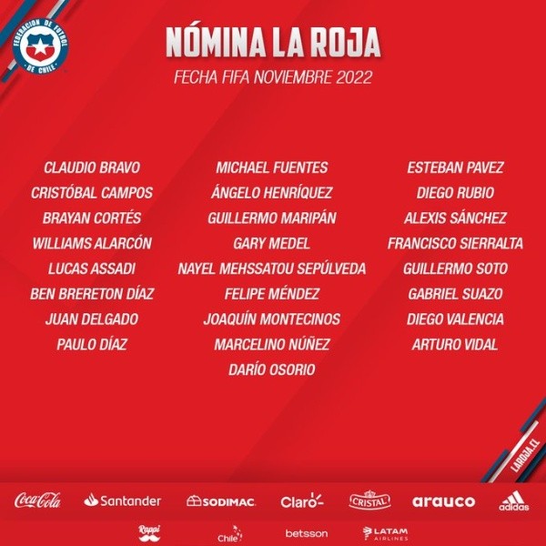 Y allí radica la causa por la que Paulo Díaz también se suma a esa lista, ya que fue convocado en las últimas horas por Eduardo Berizzo para el par de encuentros que tendrá Chile en territorio europeo. El 16 de noviembre el conjunto trasandino visitará a Polonia en Varsovia, y luego cerrarán la gira el domingo 20 ante Eslovaquia en la ciudad de Bratislava.