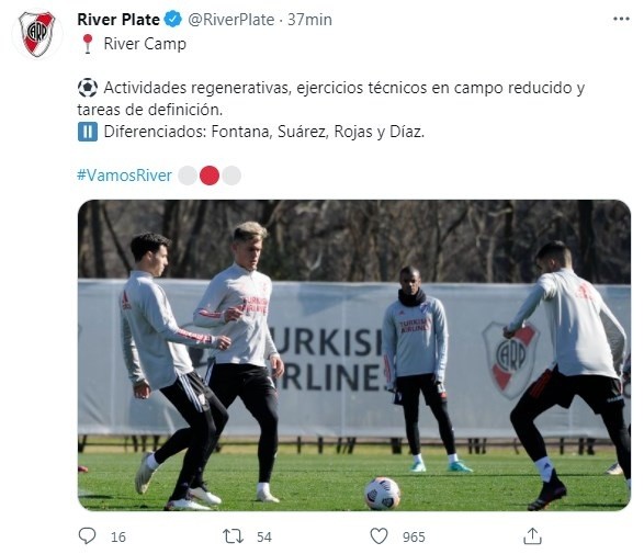 Como era de esperar en el entrenamiento de este martes, el Muñeco no dio a conocer el equipo titular y todavía se mantiene la duda respecto a quién ocupará una de las plazas del mediocampo ofensivas: Jorge Carrascal atraviesa un presente irregular y José Paradela suele aportar soluciones cuando ingresa en los segundos tiempos. Habrá que ver si Gallardo se inclina por el hábil colombiano o si le da la oportunidad al ex volante de Gimnasia de jugar desde el arranque. En relación a Paulo Díaz, que ante Huracán sufrió un duro golpe en su pierna derecha, el chileno concetró para el superclásico, pero este martes se entrenó nuevamente de manera diferenciada, aunque igualmentesería titular junto a David Martínez en la zaga central, en caso de no llegar su lugar lo ocuparía Maidana. El probable equipo ante Boca sería: Armani; Montiel, Díaz o Maidana, Martínez, Angileri; Enzo Pérez, Zuculini, De La Cruz, Carrascal o Paradela; Álvarez y Romero.