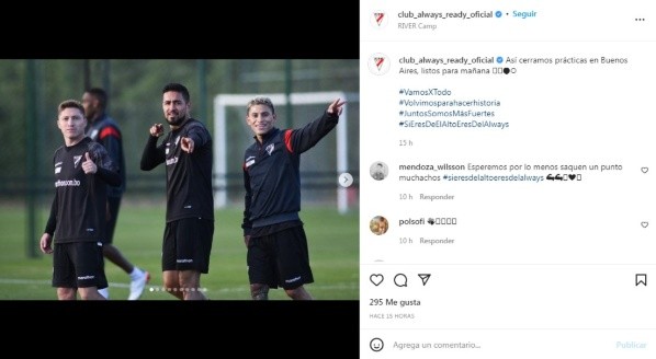En las redes sociales del elenco boliviano se observaron varias fotos del entrenamiento en el River Camp y se pudo ver al plantel trabajando y preparando el partido ante Boca, entre los futbolistas de Always Ready está Marcos Riquelme, el argentino que en el país vistió las camisetas de Fénix y Olimpo y que desde 2014 tuvo experiencias en el fútbol chileno, peruano y boliviano.