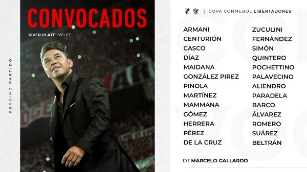Más allá de lo que simboliza este nuevo cruce entre el elenco del Muñeco y el del Cacique Medina, en el Millonario hay algunas preocupaciones en lo que respecta al armado del equipo. Luego del último entrenamiento en el River Camp, Marcelo Gallardo definió la lista de convocados y además de la baja obligada de Rodrigo Aliendro –fue expulsado el último domingo ante Godoy Cruz en el Monumental-, sorprendió con otra ausencia de peso.