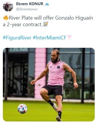 Es que este lunes surgió desde el viejo continente la noticia de un posible ofrecimiento de River hacia el Pipita, quien se encuentra en estos momentos en el Inter Miami de la MLS, un club donde uno de los principales propietarios es el inglés David Beckham. “River Plate le ofrecerá a Gonzalo Higuaín un contrato por dos años”, sostuvo el periodista especializado Ekrem Konur en su cuenta de Twitter.