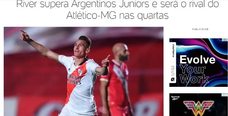 River se metió este miércoles por la noche a los cuartos de final de la Copa Libertadores por quinta edición consecutiva, y como suele suceder en esta clase de partidos y acontecimientos hubo repercusiones a lo largo y ancho del continente y del mundo. Sobre todo resonó en Brasil el gran triunfo en la cancha de Argentinos, debido a que allí será la plaza del nuevo cruce del equipo de Marcelo Gallardo, que debe enfrentar a Atlético Mineiro.