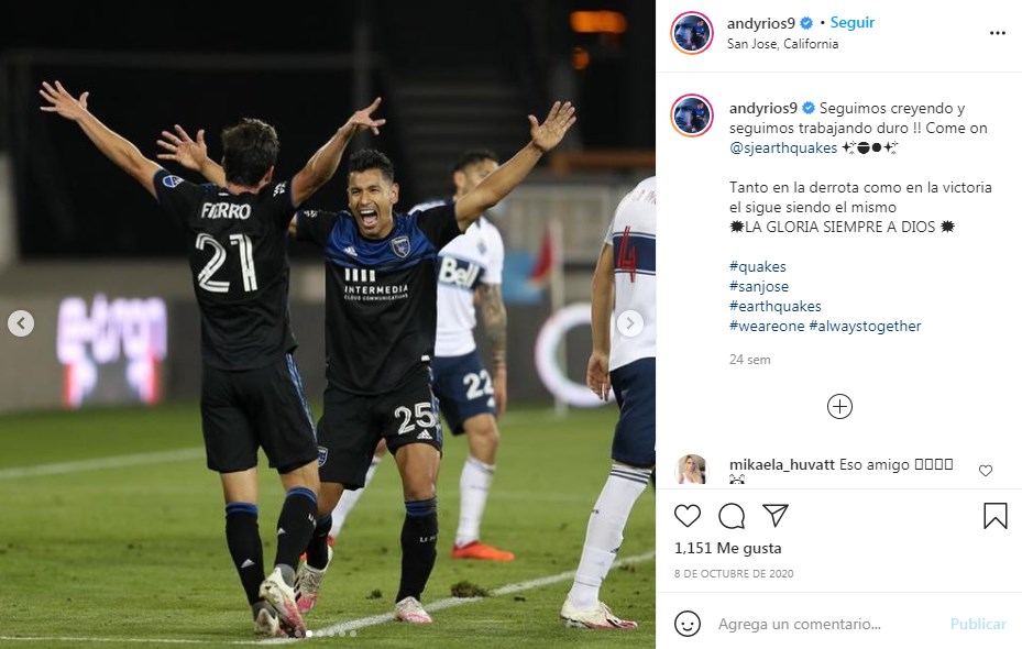 En julio de 2019 y luego de gritar campeón con Racing, Andrés Ríos pasó a San Jose Earthquakes, club que dirige Matías Almeyda –ya había su DT en River entre 2011 y 2012- y el presente del equipo del Pelado es bueno, en la última temporada jugaron los playoff y Ríos tuvo participación. Actualmente Ríos comparte plantel con dos argentinos: Daniel Vega de quién fue compañero en el Más Grande y también de Cristian Espinoza, el extremo que jugó en Boca y Huracán. El equipo de Andrés Ríos comenzará su actividad este 2 de abril cuando se equipo juegue un amistoso contra Sacramento Republic.