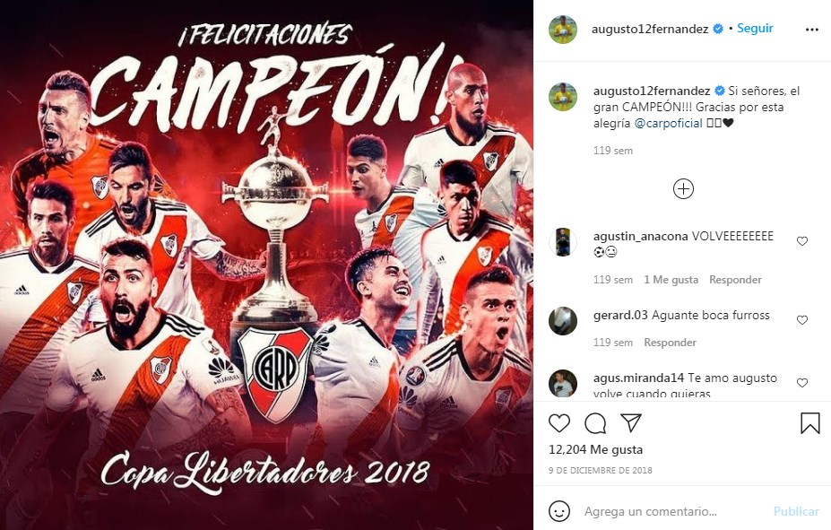 Augusto Fernández nació el 10 de abril de 1986en Pergamino y como muchos chicos soñaba con vestir el Manto Sagrado. A los 11años llegó a River donde realizó las Divisiones Inferiores hasta que en 2006, con 19,debutó en Primera.Con el correr de los años se asentó en el primer equipo y fue una pieza importante en una etapa irregular del club, aunque Augusto dejó una muy buena imagen en los hinchas ya que su juego representó la identidad del club. Fue un volante por derecha clásico, con muy buena técnica, buen pase y un remate digno de destacar. Su ciclo en el Millonario terminó en 2009: en total disputó 94 partidos, marcó tres goles y fue campeón del Clausura 2008 con Simeone como entrenador.
