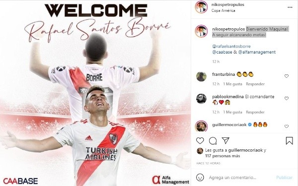 El mensaje de bienvenida a Borré (Instagram @nikospetropulos)