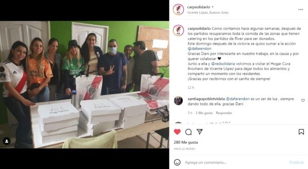 “Como contamos hace algunas semanas, después de los partidos recuperamos toda la comida de las zonas que tienen catering en los partidos de River para ser donados.