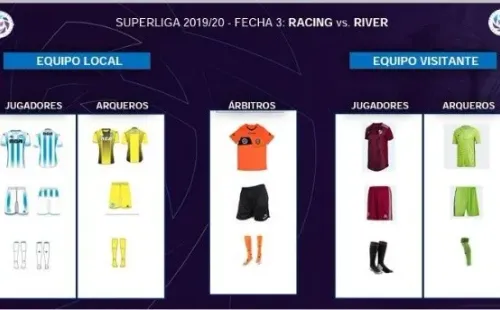 A diferencia del partido frente al Granate, River no lucirá su ropa tradicional, sino que presentará uno de sus uniformes alternativos. De acuerdo a lo aprobado por el Comité Ejecutivo del torneo, los jugadores que dirige Marcelo Gallardo usarán la indumentaria bordó.