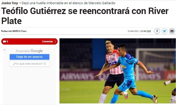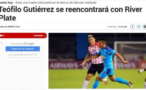 Y sobre todo lo que significa este gran desafío para Junior se expresaron los principales periódicos de todo Colombia. El diario “Marca” justamente hace principal referencia a lo que será el reencuentro de Teo con el club de sus amores en Argentina, donde fue campeón tanto del último torneo local de River como de la Copa Sudamericana, y además formó parte del plantel que obtuvo la primera Libertadores del ciclo de Marcelo Gallardo.