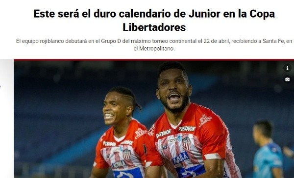 Por su parte, “El Heraldo” destaca que Junior tendrá un “duro calendario en la Libertadores”, y donde manifiesta además que según su óptica tanto River como Fluminense son los grandes candidatos a pasar a octavos de final, por lo que los dos partidos frente a Independiente Santa Fe, el otro equipo colombiano del grupo, serán decisivos para las aspiraciones a pasar de fase.