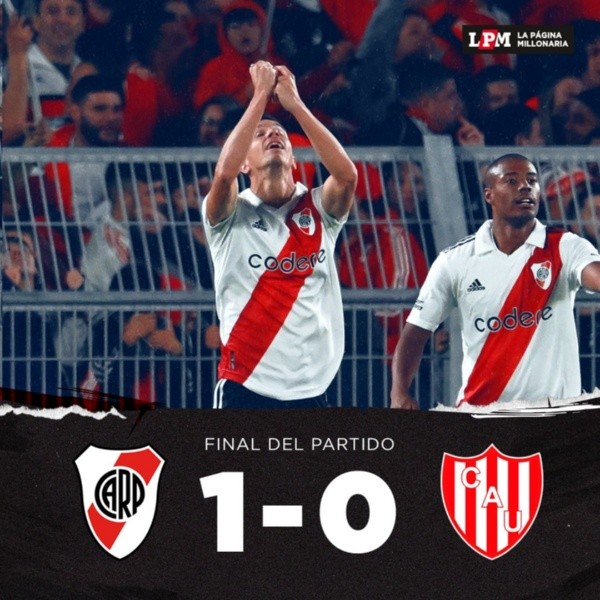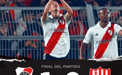 RIVER PLATE (4-2-3-1):1-Franco Armani; 20-Milton Casco, 14-Leandro González Pírez, 17-Paulo Díaz, 13-Enzo Díaz; 24-Enzo Pérez, 29-Rodrigo Aliendro; 26-José Paradela, 10-Ignacio Fernández, 11-Nicolás De La Cruz; 18-Lucas Beltrán.DT:Martín Demichelis.