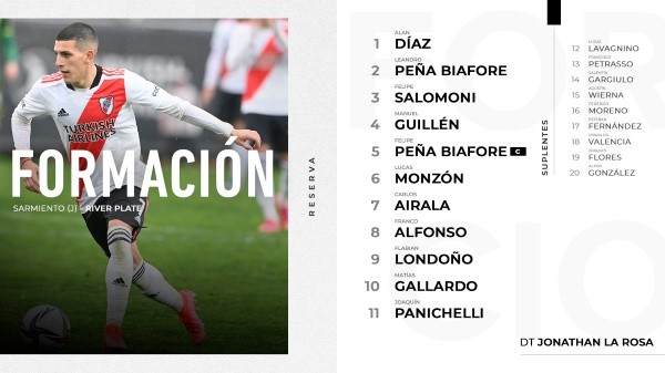 La formación de River vs. Sarmiento
