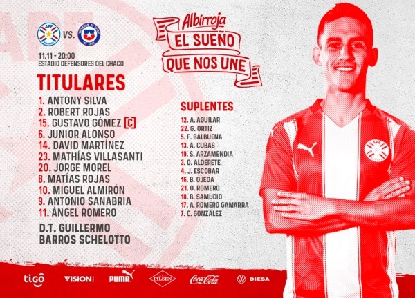 Tras haberse sumado el pasado lunes, el Mellizo decidió que los defensores de River formen parte de la línea de fondo de la selección Albirroja. Al igual que durante el ciclo de Eduardo Berizzo, el Sicario Rojas jugará de lateral derecho mientras que David Martínez irá de segundo central, compartiendo zaga con Gustavo Gómez. Paraguay está a cuatro puntos del último que está ingresando al Mundial y por eso necesita ganar sío sí.