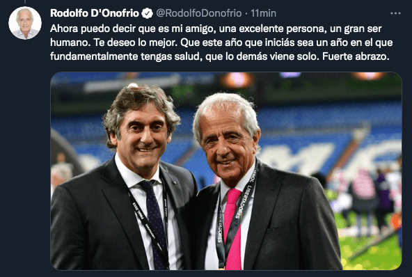 Y continúo, en un hilo en su cuenta de Twitter: “Fue para mí realmente una enorme alegría y un honor haber estado trabajando con vos. Quién me iba a decir a mí que como hincha un día iba a ser presidente e iba a poder estar al lado de un ídolo, al cual siempre admiré como jugador“.