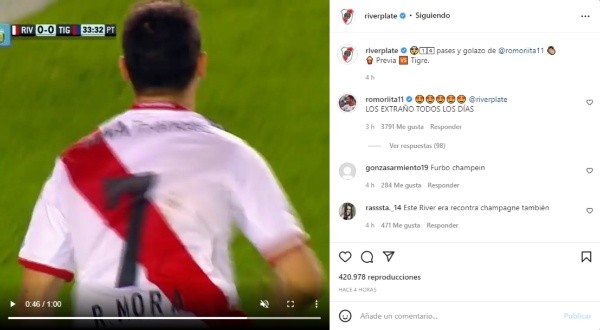 En la previa, las redes oficiales del Más Grande compartieron el video de aquel gol que rápidamente fue replicado por Mora con mensajes de nostalgia: “Te extraño todos los días River Plate. Gracias por tantos años de felicidad y momentos únicos“, fueron las palabras que eligió el uruguayo para recordar el momento. ¡Nosotros también te extrañamos Morita y esperamos verte pronto dando una vuelta por el Monumental!