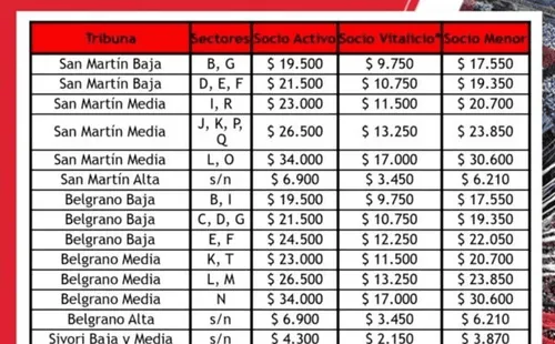 De esta manera, se mantienen los precios estipulados en un primer momento, donde oscila un aumento entre el 47 y el 60%. Cabe recordar que el nuevo abono contemplará los partidos de local correspondientes ala Copa de la Superliga actual, y a la próxima edición de la Superliga que comenzará luego de la Copa América.