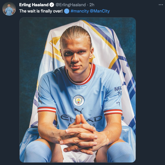 Mediante un video de Haaland vistiendo los colores del City de pequeño (su padre jugó 38 partidos en el club y por eso el vínculo) y luego una imagen actual firmando el contrato, el equipo inglés presentó con bombos y platillos a su figura, por la cual le pagaron poco más de 70 millones de dólaresal Dortmund. El noruego es uno de los fichajes bomba del mercado y se sumará a un plantel repleto de figuras como Kevin De Bruyne, Bernardo Silva, Phil Phoden,Gabriel Jesus (podría abandonar el club si aparece una oferta), Riyad Mahrez, JackGrealish, Raheem Sterling y la Araña. Pavada de compañeros va a tener el delantero de River…