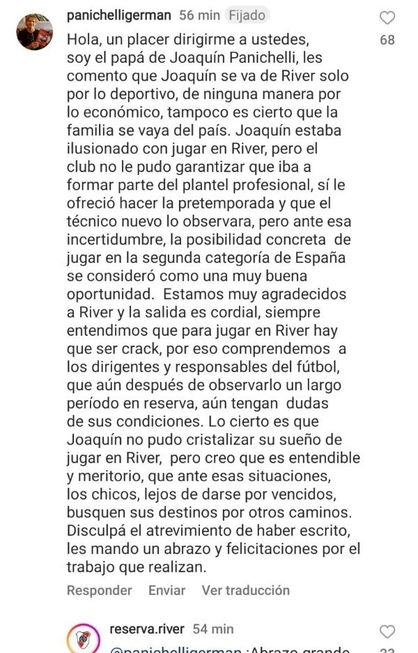Para los hinchas de River ya es tema viejo, pero en algunos aún perdura la bronca por haber perdido a Joaquín Panichelli, goleador de la Reserva en el último año. Al ser categoría 2002, el delantero debía firmar su primer contrato antes del 30 de noviembre o, caso contrario, estaba obligado a quedar libre. El Millonario comenzó a negociar con su representante sobre la fecha, en un momento estuvo cerca el acuerdo, pero el protagonista, al no tener asegurada su presencia en el plantel profesional, decidió irse.