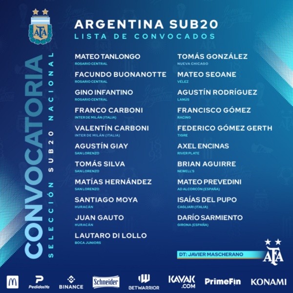 En esta oportunidad, el aporte de River a las selecciones juveniles aplica tanto para el Sub 17 que dirige Pablo César Aimar como para el sub 20 que comanda Javier Mascherano. En el caso de los más chicos, el Payasito volvió a convocar a los cinco jugadores que habían formado parte de la última nómina para disputar un amistoso frente a Chile: se trata de Franco Jaroszewicz (arquero), Ulises Giménez (defensor), Agustín Obregón (mediocampista), Franco Mastantuono (enganche) y Agustín Ruberto (delantero). Por su parte, el Jefe citó a Axel Encinas, volante creativo de gran presente en la Reserva millonaria.