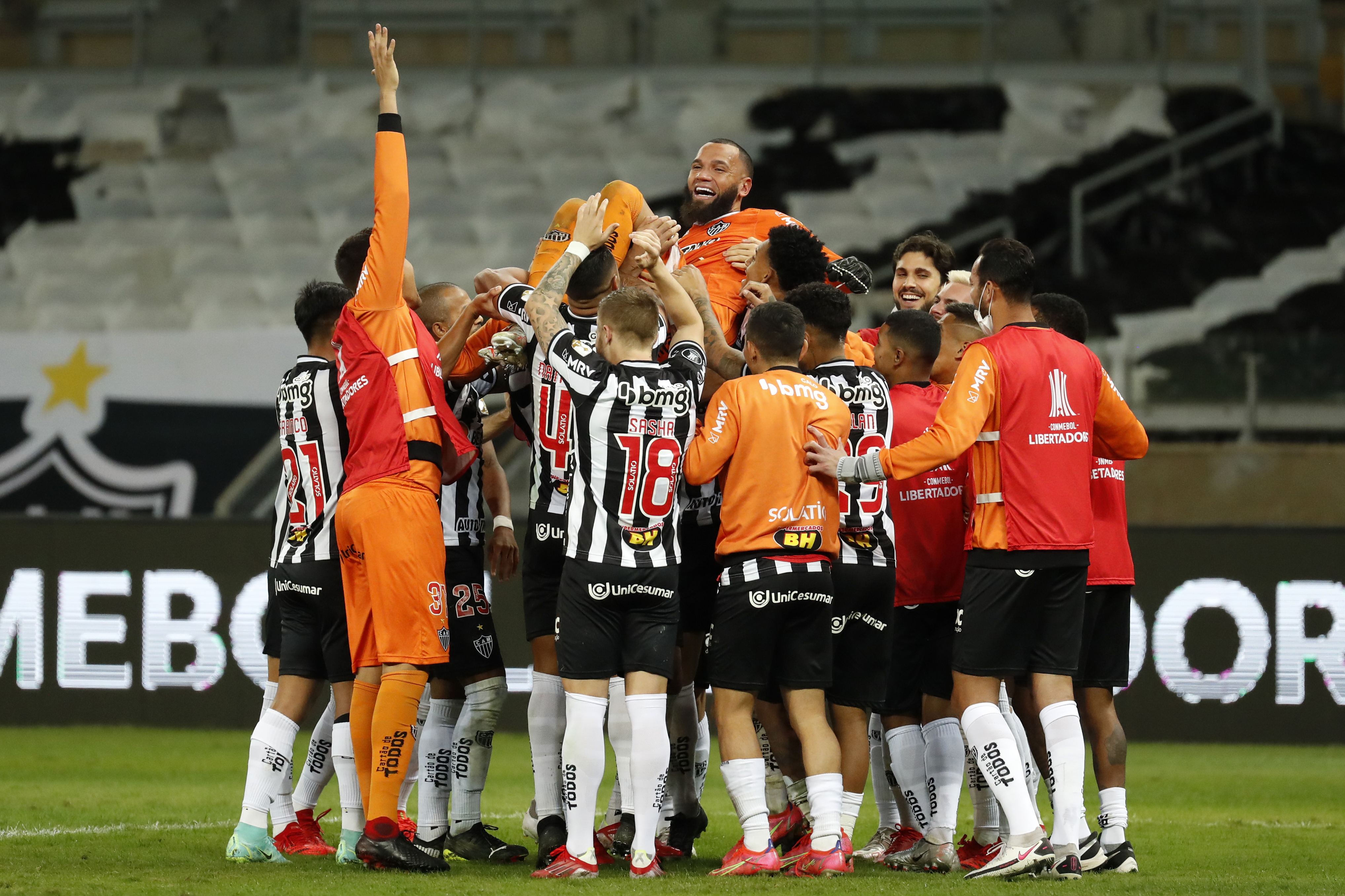 Atlético Mineiro celebra tras la definición por penales que estuvo en los pies de su arquero Éverson. (Foto: Getty).
