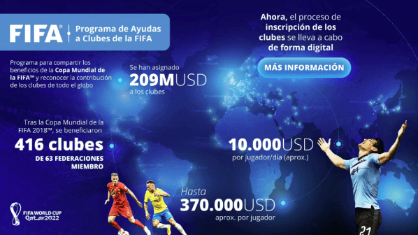 En la previa de la Copa del Mundo, la FIFA comunicó que repartirá 209 millones de dólares entre entidades de todo el mundo. ¿En qué lugar entra River? Todos los clubes que tengan jugadores afectados a la cita mundialista podrán solicitar el pago de 10 mil dólares por cada día que los mismos estén bajo la disciplina de sus selecciones, sin importar si suman o no minutos oficiales en Qatar.