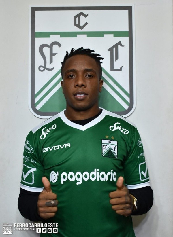 La foto oficial de Ferro cuando presentó al colombiano: se fue sin jugar.