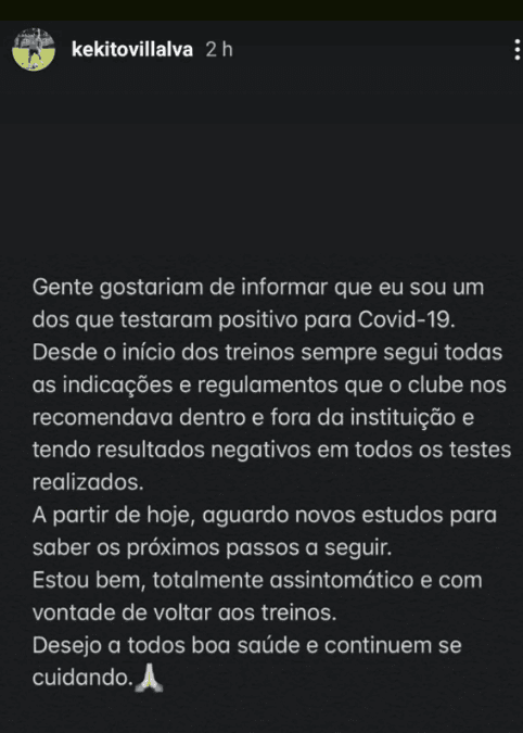 “Gente, quería informales quesoy uno de los que dio positivo deCOVID-19.Desde que comenzamos a entrenar siempre seguí todas las indicaciones y normativas que el club nos recomendó dentro y fuera de la institución y teniendo resultado negativo en todos los testos realizados”, indicó el Keko. Y agregó:”A la fecha de hoy, estoy a la espera de nuevos estudios para saber los próximos pasos a seguir.Me encuentro bien, totalmente asintomático y con ganas de regresar nuevamente a las canchas. Les deseo mucha salud a todos y sigan cuidándose”.