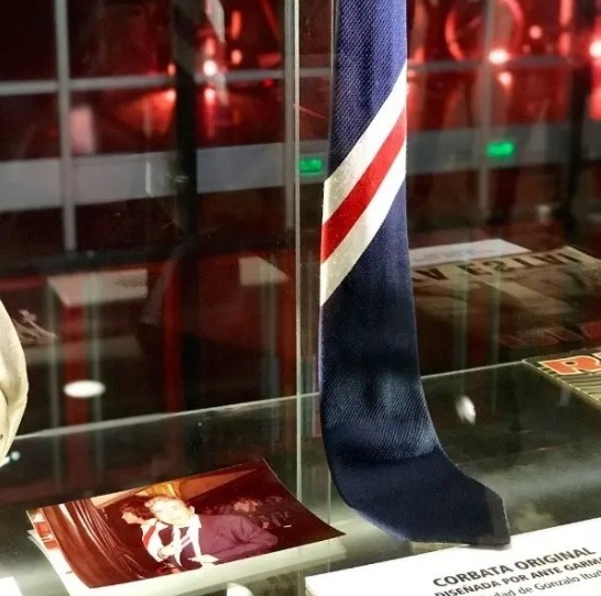 Más de una vez el ícono de River explicó la particularidad de la historia que lo une con esa corbata, que se la entregó ni más ni menos que un hincha de Boca. “Me la regaló Ante Garmaz un tiempo antes de que asumiera en River. La diseñó especialmente, era azul con una franja rojiblanca en el centro. A partir de ese entonces, no me la saqué más”, confesó el Feo al respecto.