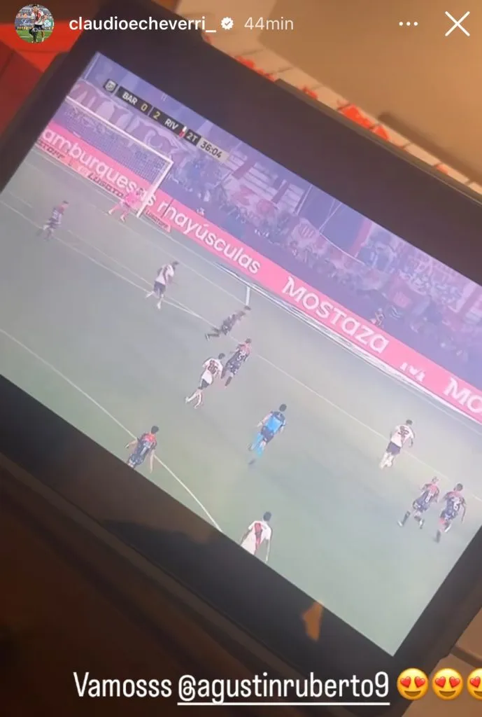Así como lo había hecho tras el debut de Agustín Ruberto en la primera fecha con Argentinos Juniors, en este nuevo hito del juvenil de 18 años se pudo ver como Claudio Echeverri sigue metidisimo en River pese a estar en el Torneo Preolímpico con la Selección Argentina.