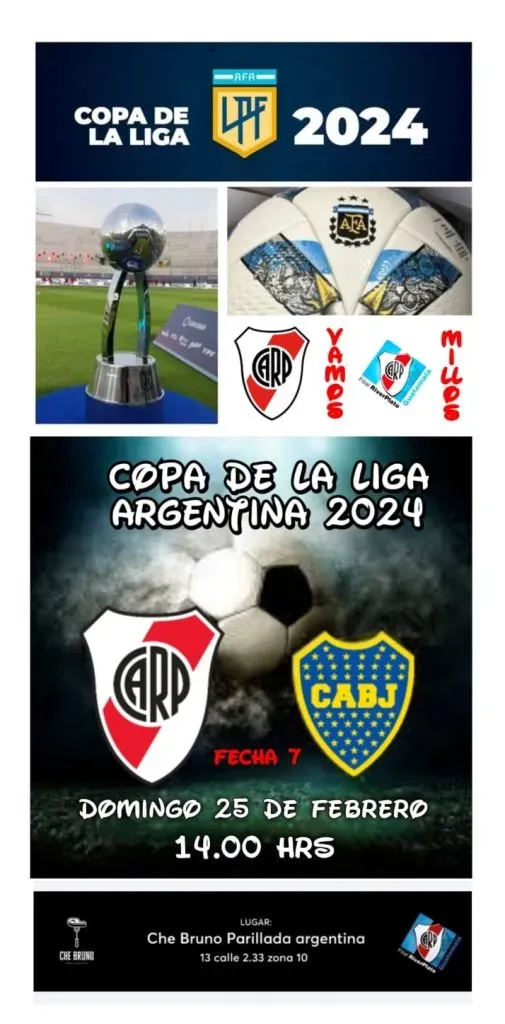 Previa y partido: desde las 14.00 horas en 13 calle 2.33 zona 10 (Che Bruno Parrillada argentina)