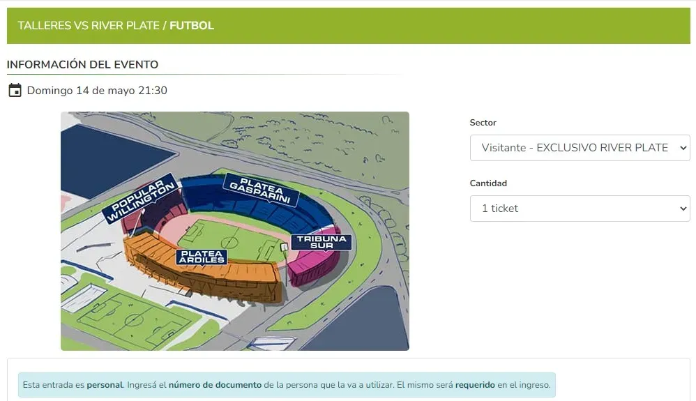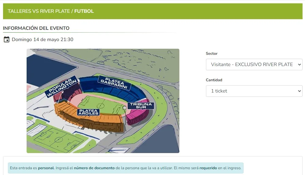 Este lunes por la mañana comenzó la venta online de las localidades para el partido entre River y Talleres. Los hinchas millonarios deberán ingresar al sitio Boletería Vip, la única plataforma autorizada para la venta de entradas. Los simparizantes del Más Grande deberán registrarse en el sitio con sus datos personales, cargar su número de DNI a la hora de elegir la entrada y luego recibirán un código QR con el que podrán ingresar al estadio el día del partido. No habrá venta presencial ni tickets físicos.