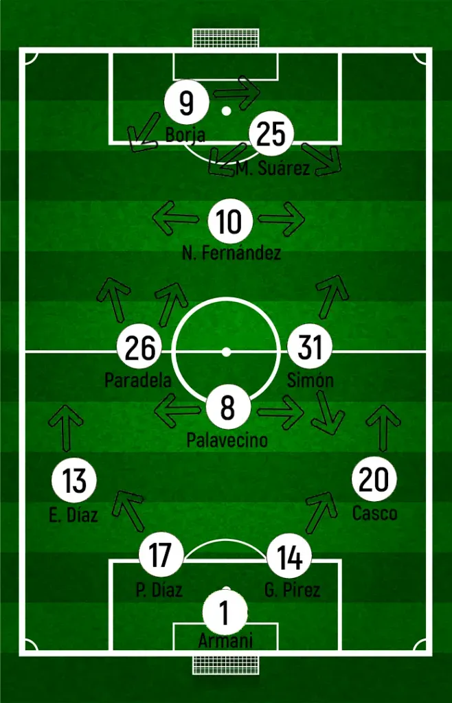 Otra vez, nos volvimos a encontrar con el juego asociado que Demichelis busca implantar en el equipo. River manejó todo el partido con transiciones rápidas, jugadas de lado a lado, desmarques constantes y movimiento por todo el campo. Todo, con el timing y los toques necesarios para cansar al rival. Además, por fin, el último pase no fallo. Mereció marcar más goles.