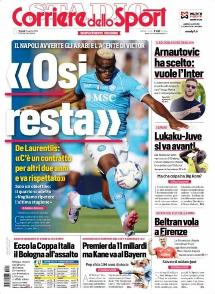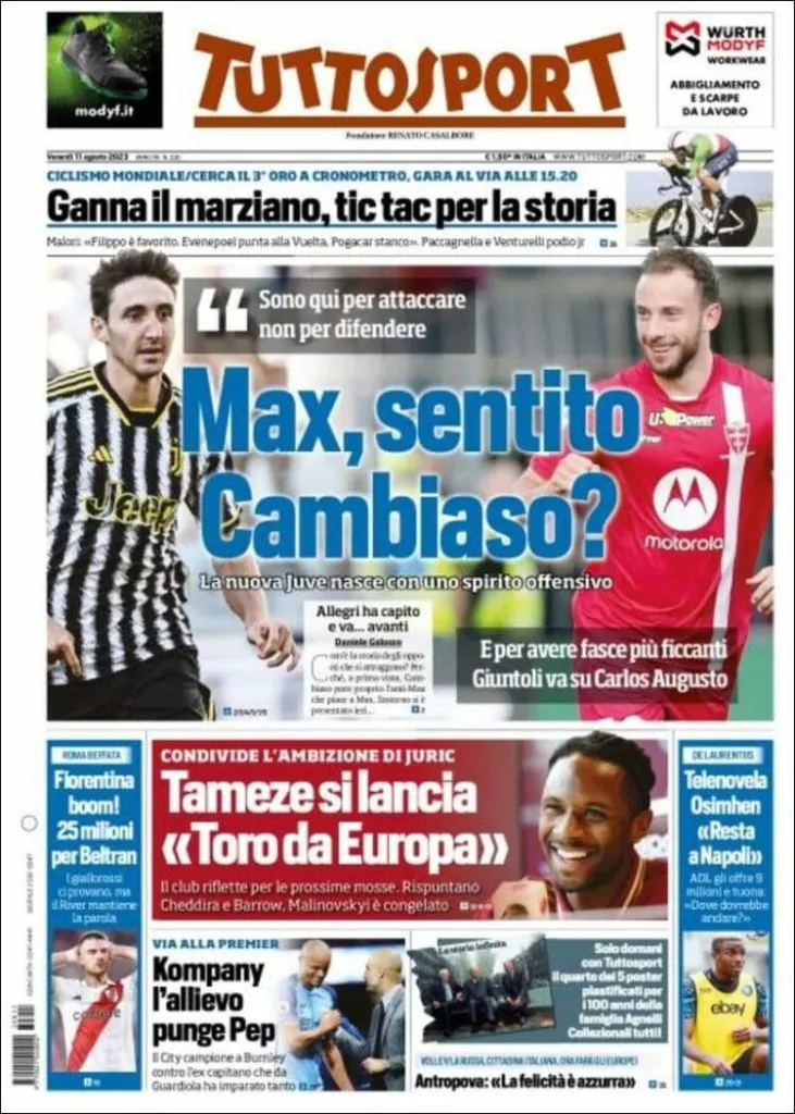 La Gazzetta dello Sport destacó que Fiorentina venció a la Roma en la pelea por Beltrán. Tuttosport describió el pase de Beltrán a la Fiore como un Boom y puso el foco en los 25 millones de euros que se pagarán por él. Corriere dello sport, por su parte, fue más informativo y escribió en su tapa: “Beltrán vuelva a Florencia”. Claramente la llegada de Beltrán a la Fiore no pasó desapercibida para los principales diarios deportivos italianos.