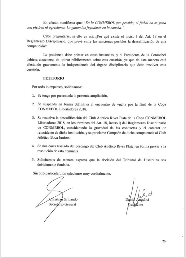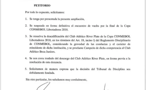 Pero a Boca no le alcanzó con que el partido se postergue sino que fue ante Conmebola que descalifiquen al Más Grande. Y hoy, tras haberse conocido que la intención de la Confederación Sudamericana de Fútbol e sque se reprograme el encuentro, emitió un comunicado -de manera desesperada- para que le otorguen la Copa.
