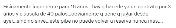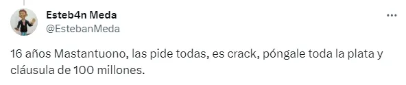 Los tuits de los hinchas de River para elogiar a Mastantuono