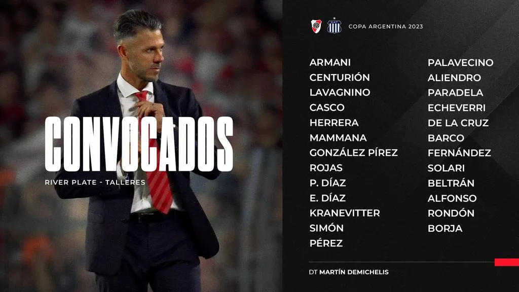 Partido de alto voltaje entre los dos mejores equipos del campeonato, que se enfrentan mano a mano en Mendoza por un lugar en los octavos de final de la Copa Argentina. River viajó este miércoles por la noche rumbo a la tierra del buen vino y son 25 los jugadores que quedaron afectados al partido en el Hotel Cóndor.