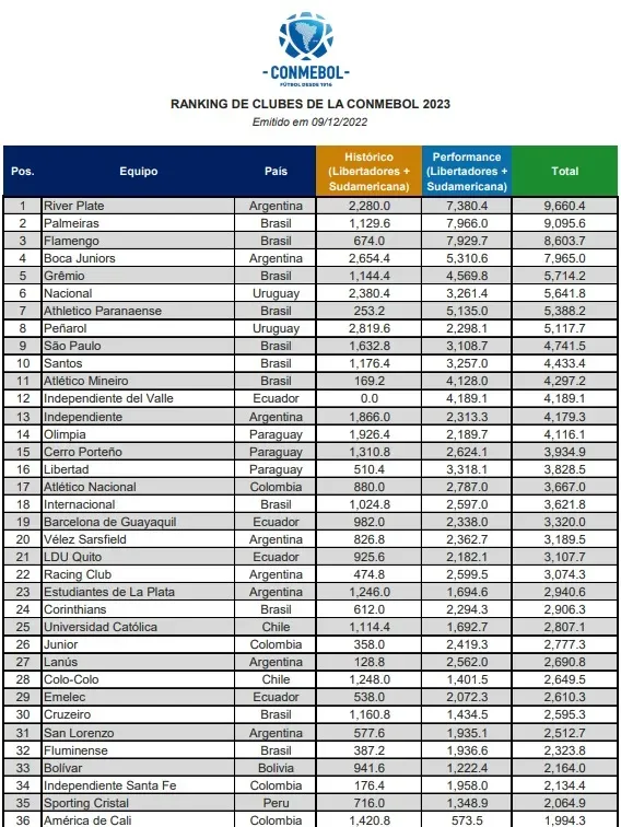 Así está el ranking de clubes de Conmebol que clasificaría a River
