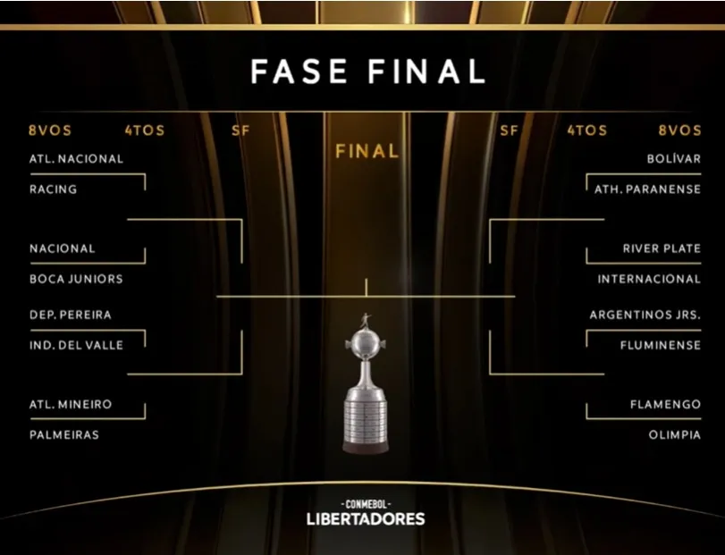 El sorteo de Conmebol sirvió para definir la ubicación de cada uno de los 16 clasificados en el cuadro final. Más allá de los partidos de octavos de final, los participantes ya conocen cuál es el camino que deberán recorrer para llegar a la final. A la luz del sorteo, no será un camino para nada sencillo hasta llegar a Río de Janeiro, ya que deberá medirse en primera instancia con un equipo brasilero: Inter de Porto Alegre.