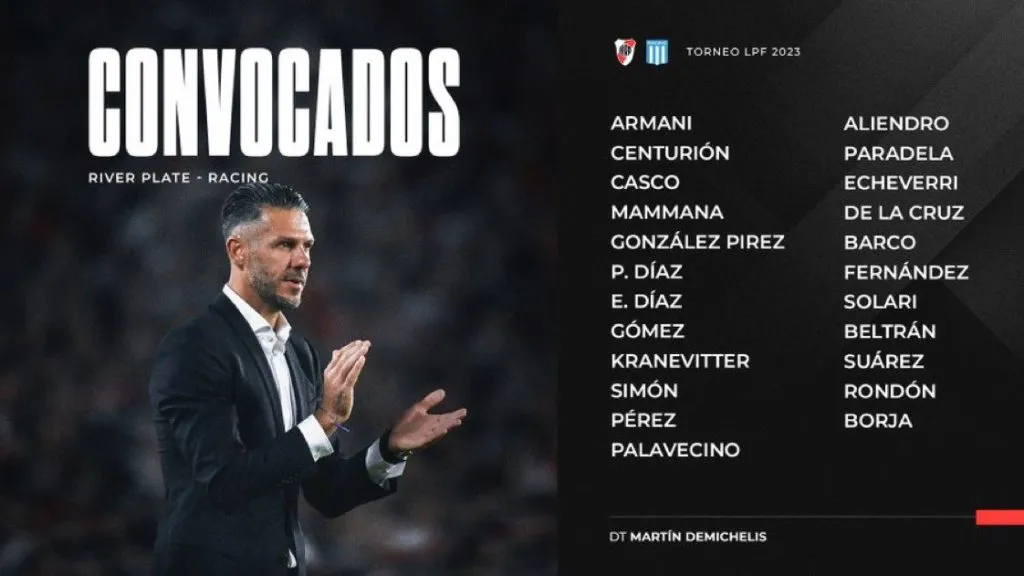 Que se termine el torneo no es motivo alguno para relajarse. Los jugadores lo tienen claro porque ese es el pensamiento que transmitió Martín Demichelis en los últimos días. River ya salió campeón de la Liga Profesional y mañana ante Racing será premiado oficialmente, pero antes de eso hay un partido que jugar y futbolistas que tienen una nueva chance de demostrar.