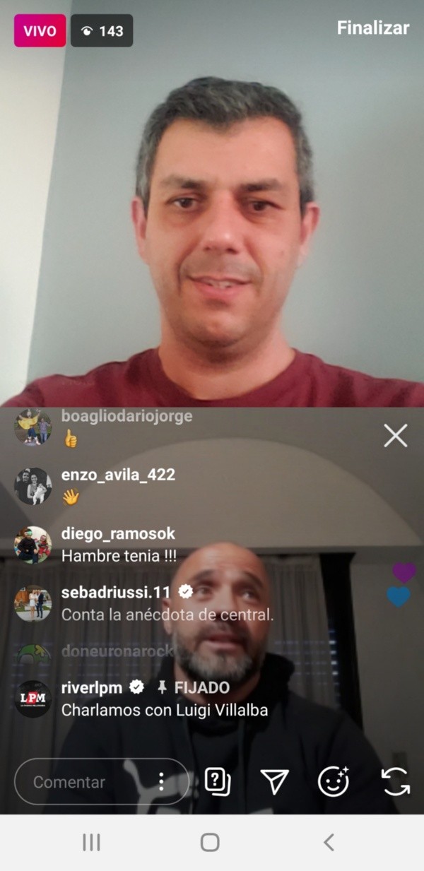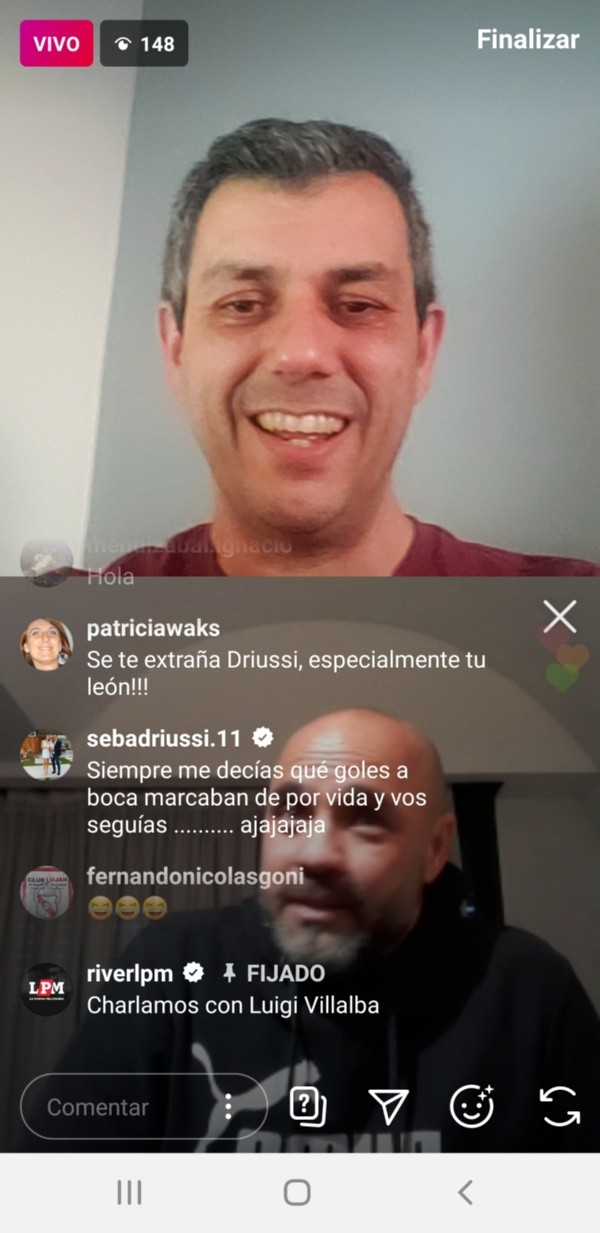 Facundo Villalba fue el protagonista de la charla en vivo por Instagram con La Página Millonaria y mientras estaba recordando su paso como jugador de River y también su etapa como técnico de la Reserva, entre los muchos hinchas que estaban siguiendo la entrevista apareció Sebastián Driussi desde Rusia. El delantero del Zenit fue dirigido por Luigi en la Octava y hay un cariño mutuo que los une y que quedó a la vista con los mensajes que escribió el Gordo y con las risas que provocaba en su entrenador de Inferiores.