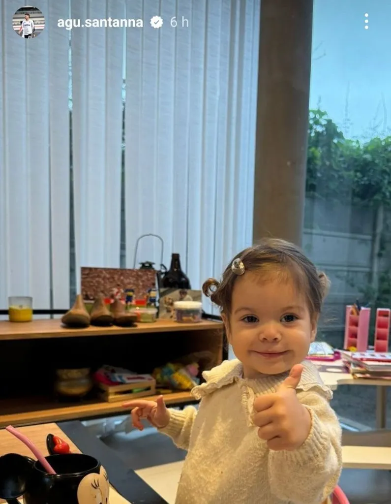 En el caso de Agustín Sant’Anna, el lateral millonario decidió mostrar parte de la intimidad familiar con una foto de su hogar y con su hija como principal protagonista. Sin embargo, los hinchas de River se centraron un detalle que a priori parecía irrelevante: un cuadro ubicado en el fondo y que aparece bastante desenfocado en la foto.
