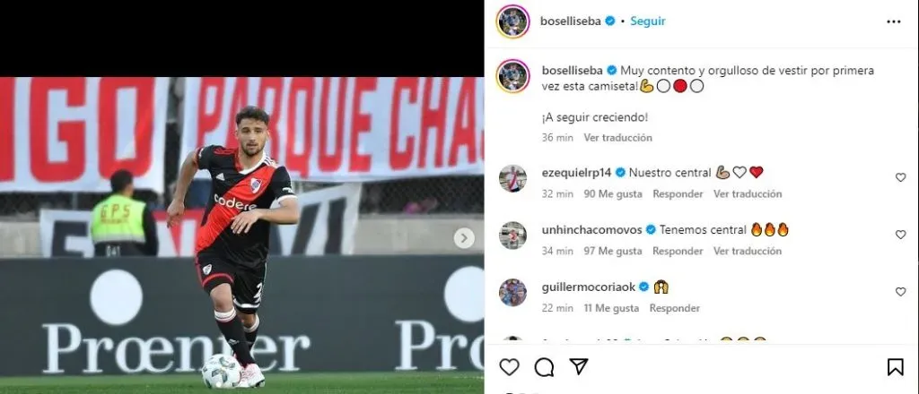 Luego del estreno con el Millonario, el ex Defensor Sporting utilizó su cuenta de Instagram para dejarle un mensaje a los hinchas: “Muy contento y orgulloso de vestir por primera vez esta camiseta. ¡A seguir creciendo“, fueron las palabras que utilizó Boselli para transmitir su satisfacción.