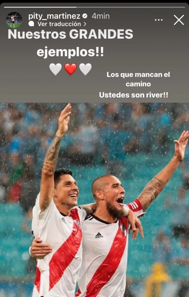 Gonzalo Martínez, autor del único tanto del Más Grande en la derrota frente a Huracán, le dedicó unas emotivas palabras a Jonatan Maidana y Enzo Pérez en su cuenta de Instagram. “Nuestros grandes ejemplos. Los que marcan el camino. Ustedes son River”, posteó el Pity en una de sus historias de Instagram, ¿anticipando el adiós definitivo del capitán millonario?