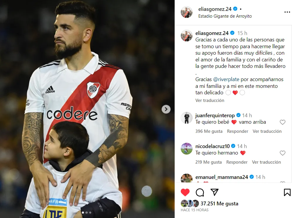 El lateral compartió una publicación en las redes sociales en la que agradeció el apoyo recibido: “Gracias a cada uno de las personas que se tomo un tiempo para hacerme llegar su apoyo fueron días muy difíciles, con el amor de la familia y con el cariño de la gente pude hacer todo más llevadero. Gracias River Plate por acompañarnos a mi familia y a mi en este momento tan delicado”.