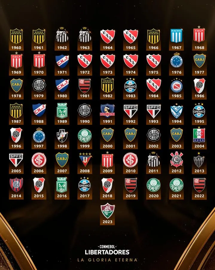 Los equipos ganadores de cada edición de la Copa Libertadores