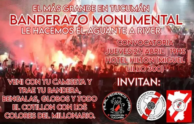 El Millonario vuelve a jugar en el interior y la tradición se repetirá: se está organizando un banderazo multitudinario para recibir al plantel comandado por Martín Demichelis en Tucumán, en la previa del partido de este viernes frente a Atlético Tucumán a las 21.30.