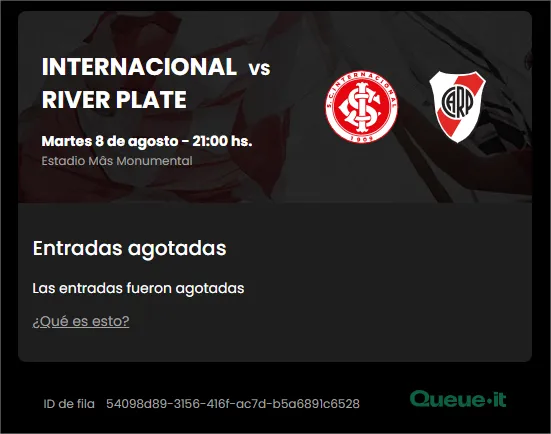 Ahora, el Más Grande viajará a Brasil para jugar la revancha frente a los dirigidos por el Chacho Coudet, el próximo martes a las 21.00 en el Estadio Beira Río de Porto Alegre. Y para dicho encuentro ya se agotaron las entradas que se habían puesto a la venta a las 14.00 por River ID.