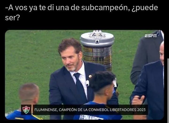 Boca perdió la final de la Copa Libertadores y explotaron los memes entre los hinchas de River en redes sociales. Fluminense se quedó con la edición 2023 del certamen continental después de imponers por 2 a 1 con goles de Germán Cano y Kennedy en el Estadio Maracaná. Gozá y reíte con los mejores memes de la derrota del eterno rival.
