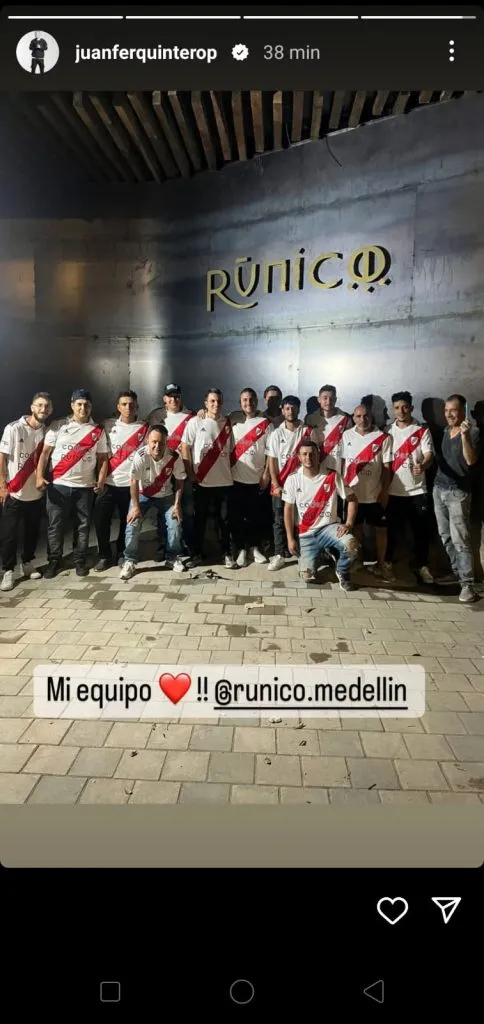 El cariño de Juanfer por River es indiscutible y en esta oportunidad lo demostró en su nuevo emprendimiento gastronómico. Rúnico abrirá en Medellín más temprano que tarde y Quintero será el propietario. El mismo futbolista compartió en sus redes sociales una foto de los empleados y todos llevaban el Manto Sagrado puesto. Una clara muestra del cariño eterno del colombiano al Más Grande.