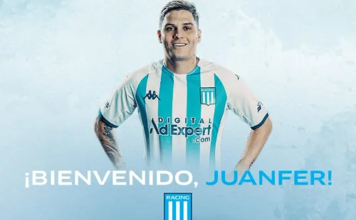 Mediante un video, Racing le dio la bienvenida a Juanfer, quien firmó contrato hasta el 31 de diciembre de 2026 luego de que le compraran el 100% de su ficha. En el mismo, hay una pequeña chicana a Boca ya que se pueden observar tres golazos que hizo a lo largo de su carrera y uno de los que incluyeron fue el de Madrid en 2018.