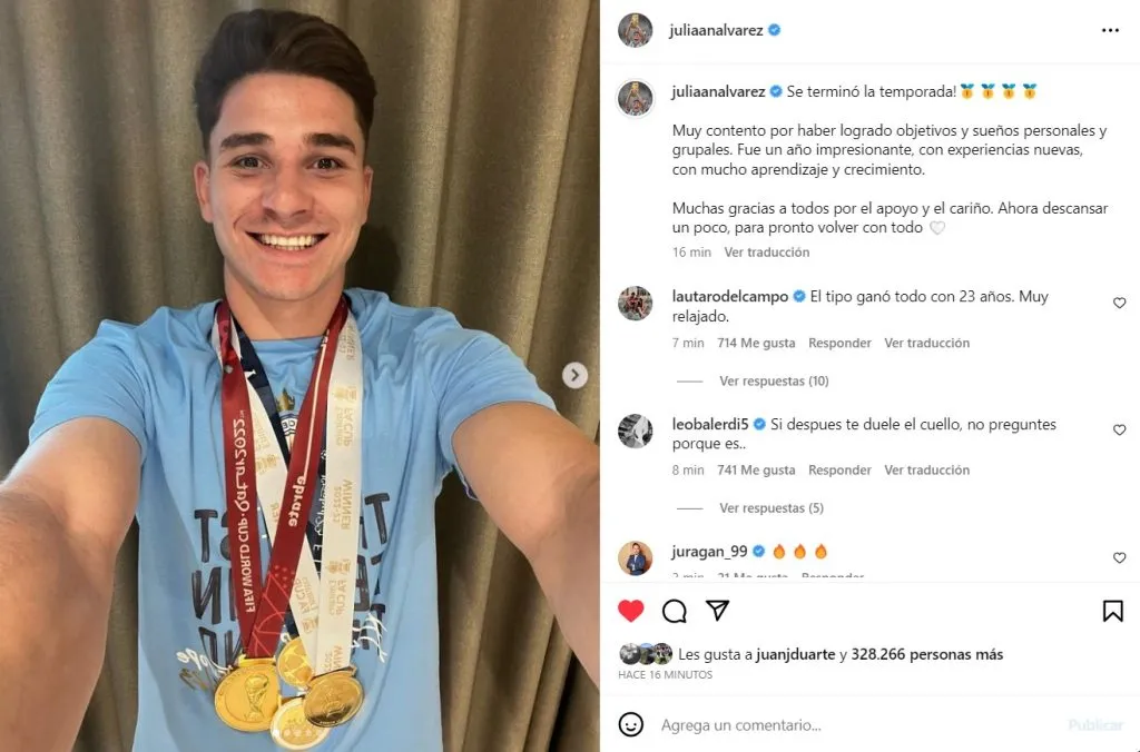 El cordobés utilizó su cuenta de Instagram para hacer un balance de su temporada impresionante y también para agradecerles a los hinchas por el apoyo. “Se terminó la temporada! Muy contento por haber logrado objetivos y sueños personales y grupales. Fue un año impresionante, con experiencias nuevas, con mucho aprendizaje y crecimiento. Muchas gracias a todos por el apoyo y el cariño. Ahora descansar un poco, para pronto volver con todo”, escribió Julián en su Instagram.